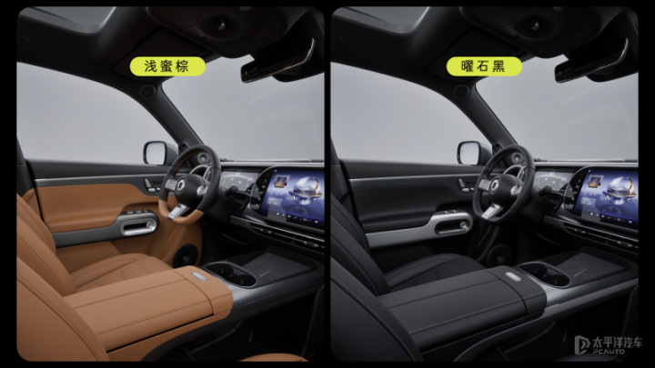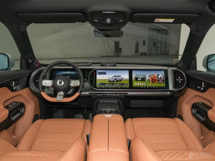 内饰方面,smart精灵#5EHD同样延续纯电版车型设计,采用由10.3英寸液晶仪表和双13英寸OLED屏幕组成的三联屏布局,支持主副驾区分娱乐信息显示,并配备25.6英寸AR-HUD,新车提供浅蜜棕和曜石黑2种内饰颜色可选。